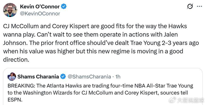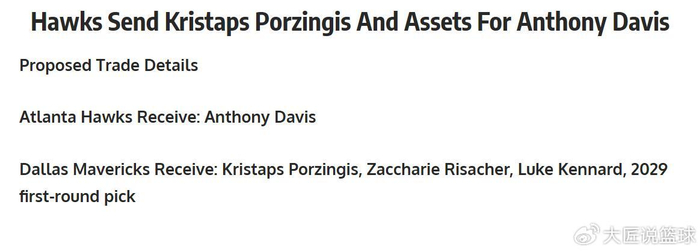 对于独行侠队来说,这是一笔完美的交易方案,哪怕他们没能从老鹰队拿到心心念念的鹈鹕26年首轮签,这笔交易方案也完全值得押宝。