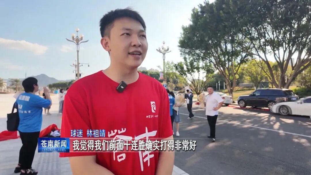 球迷 林祖靖:我觉得我们前面十连胜确实打得非常好,但是输了也是一个好的开始,我们可以重新开始,再打一个十连胜,我想说,这次咱们输了,有我们苍南的球迷陪他们一起扛。