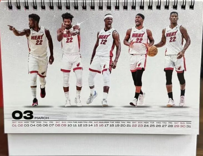 (2025年热火台历巴特勒单页,至今仍然在我的桌边)