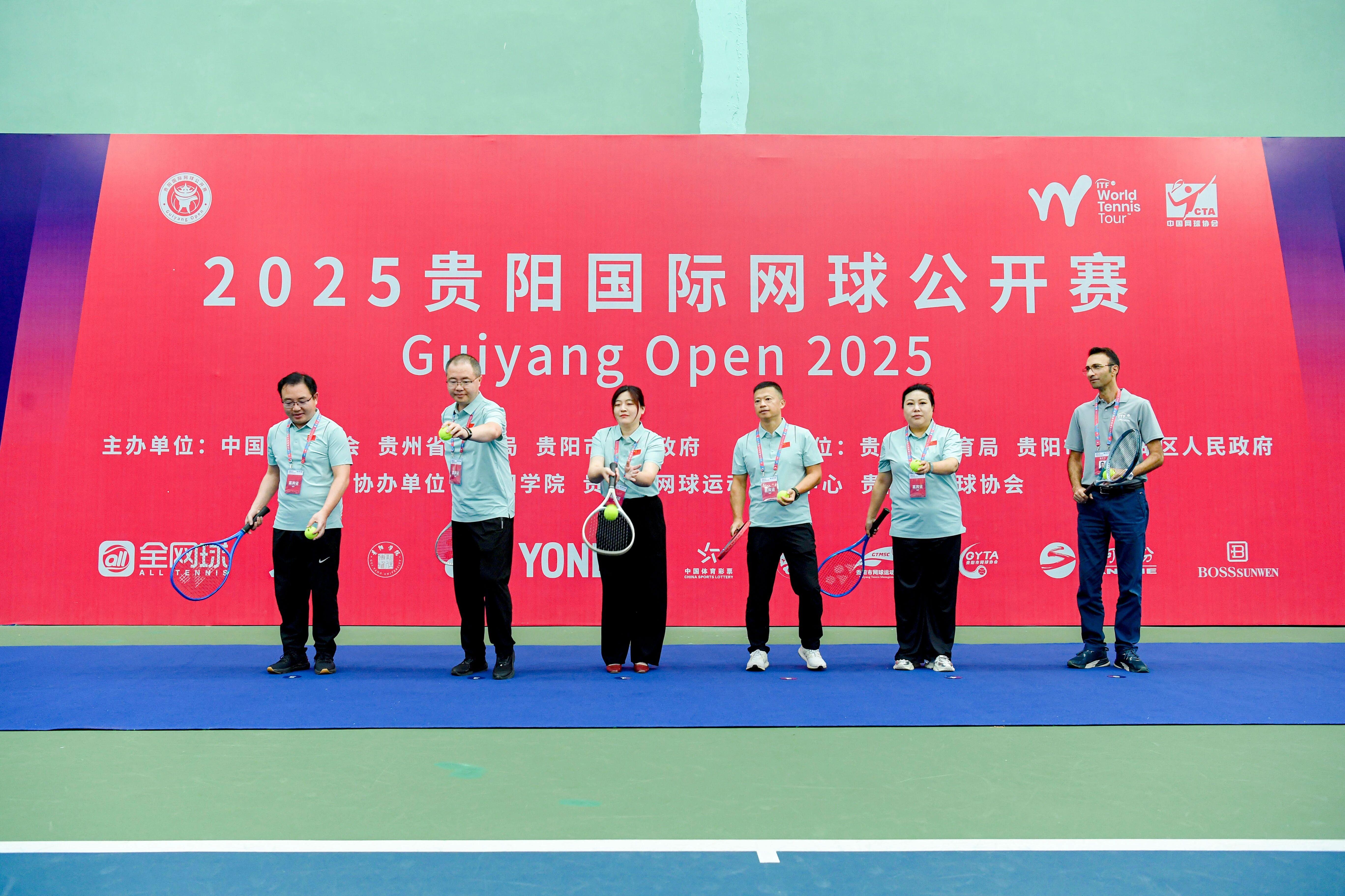 随后,运动员代表刘方舟与裁判员代表余学成先后登台宣誓,承诺遵守规则、公平竞赛。随着嘉宾与领导们共同挥拍开球,2025贵阳国际网球公开赛正式进入赛程。