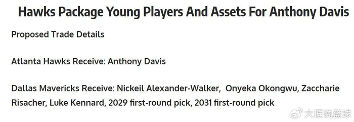考虑到浓眉哥的健康状况,以及对于未来续约大合同的要求,老鹰队没有任何理由付出如此昂贵的代价。