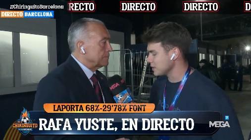 我们现在和巴塞罗那俱乐部代理主席拉法-尤斯特在一起,他刚刚也听到了大家的提问。刚才我们看到一个画面——你走到维克托-丰特的竞选区那边,和他打了个招呼。能不能说说你们当时聊了什么?